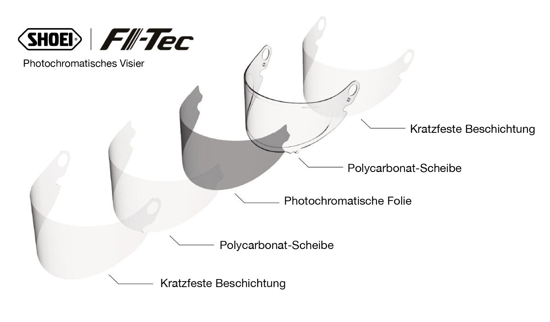 Die Tönung des Visiers paßt sich dynamisch wechselnden Lichtverhältnissen an.